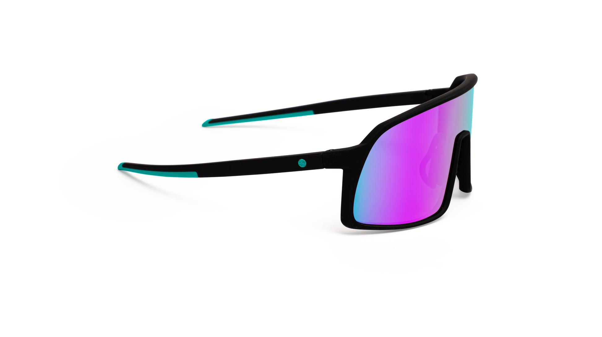 The lightweight matte black frame, paired with teal grip arms, offers all-day comfort and a secure fit. Whether you’re cycling, running, driving or just out to make a statement the Belaach na Bà’s have you covered.