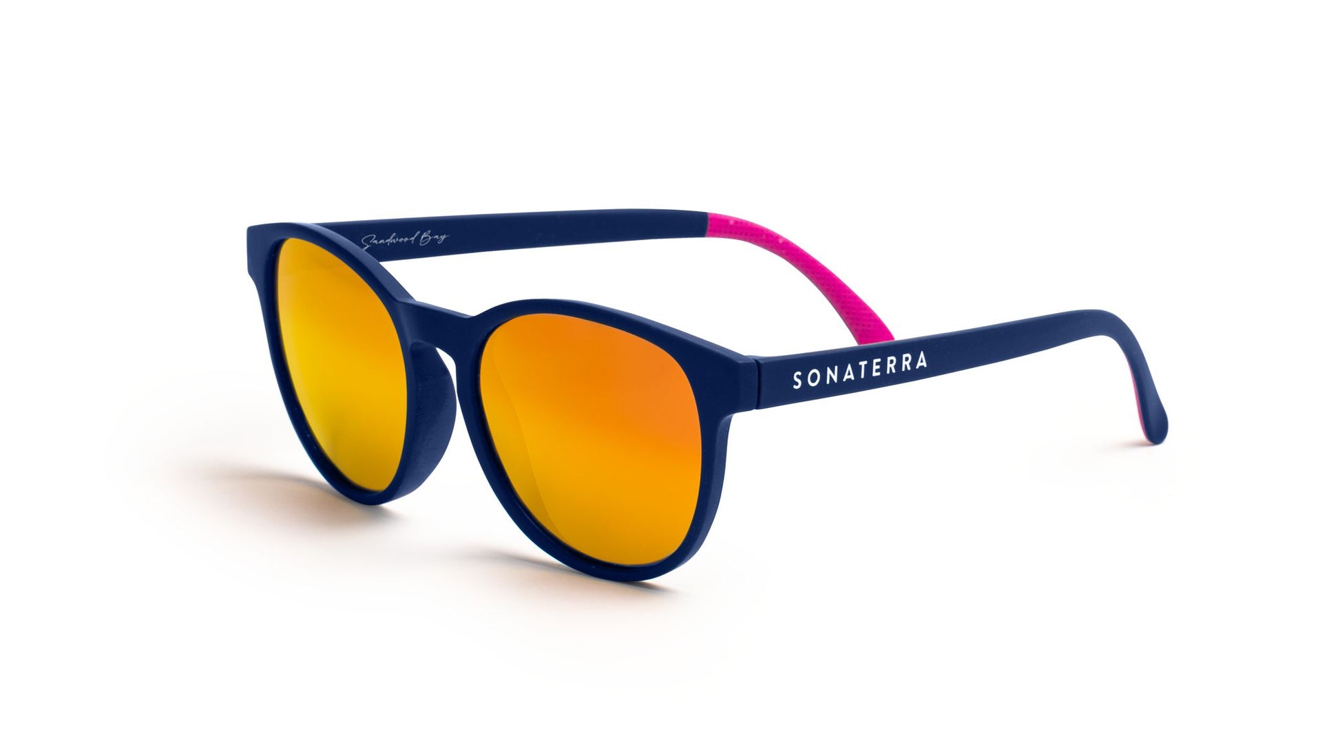Inspired by the untamed beauty of Sandwood Bay — one of Scotland’s most remote and spectacular beaches — these sunglasses bring a confident, modern twist to a classic shape. The Sandwood Bay model features a soft-touch BPA-free navy frame, rounded silhouette, and vivid pink rubber grips that deliver a perfect balance of comfort and pop.